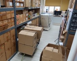 香港海關昨日(六月四日)在旺角和火炭採取特別行動,打擊售賣冒牌物品活動,檢獲約五千件懷疑冒牌物品,估計市值約六十二萬元。圖示海關人員突擊搜查的一個儲存懷疑冒牌物品的倉庫。