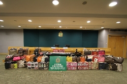 In the course of the operation, Customs and Police officers raided a number of target places in Tsim Sha Tsui. The enforcement action led to a successful crackdown on three storehouses with various types of suspected counterfeit goods including leather goods, watches, sunglasses and pens for the purpose of trade, and on another two sales outlets selling suspected counterfeit mobile phone accessories. Test-buying operations were also conducted on a dispensary for the suspected use of false trade descriptions by a salesperson in the course of selling proprietary medicine.