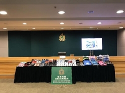 Hong Kong Customs seized about 3 000 pieces of suspected counterfeit products with an estimated market value of about $230,000 during a special operation mounted against a suspected counterfeiting syndicate in Central District this morning (April 9).